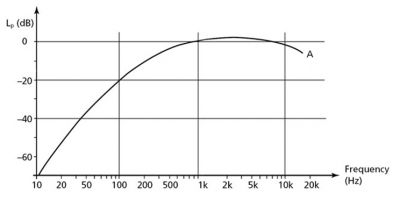 Le dBA : Le dBA est une unité comme le dB pondéré en fonction de la perception auditive de l’être humain. En effet l’oreille humaine se comporte comme un filtre qui favorise les fréquences de la parole. Ci-contre la courbe de pondération A.