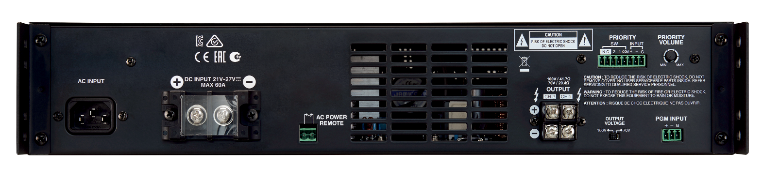 Ces amplis comprennent 2 entrées audio dont une entrée prioritaire permettant ainsi de couper le programme en cours pour la diffusion d’un message prioritaire par contact sec, par exemple.