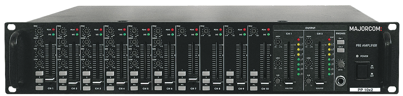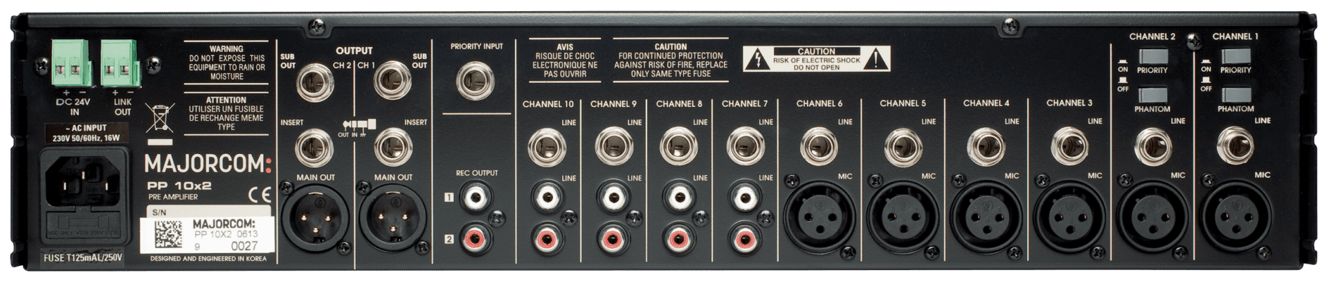 | Entrées | CH1 à 6 MIC / LINE - CH7 à 10 LINE - PRIORITY |