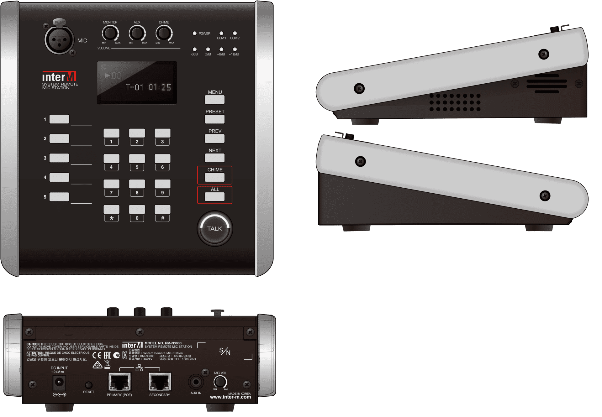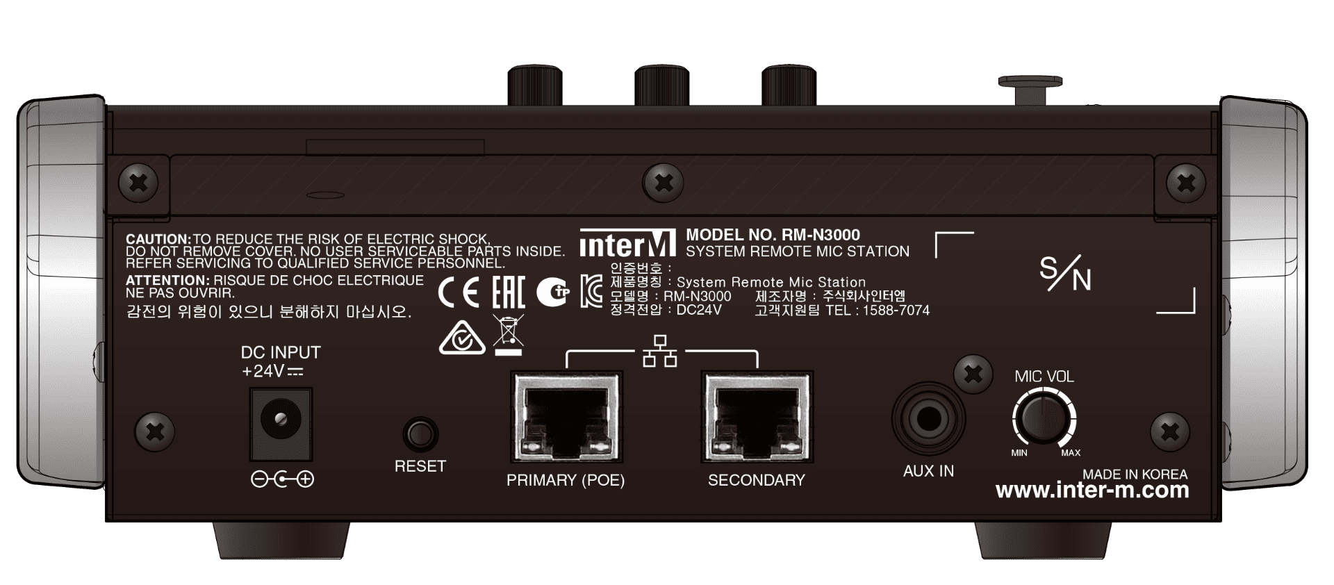 | S/B (<22kHz LPF) | MIC > 70 dB / AUX > 80 dB |